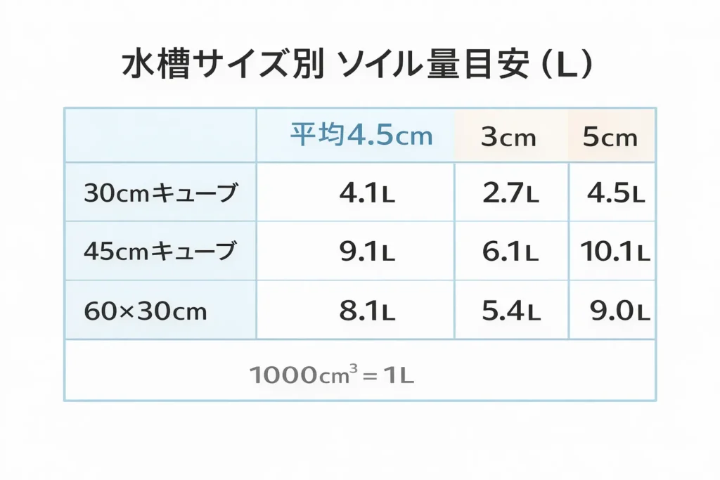 - 30cm・45cm・60cm水槽のソイル量の目安