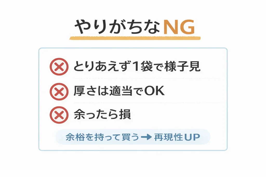 この記事の計算は「買う量を決めるための目安」として使ってください。