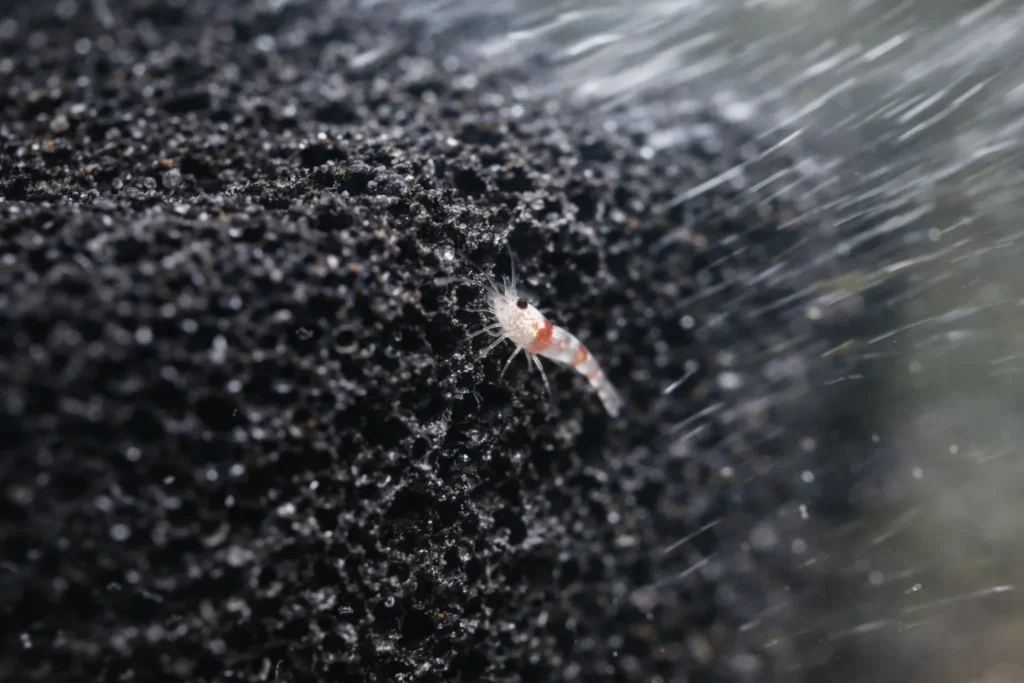 吸水力が強いと稚エビがスポンジ面に貼り付けられて、