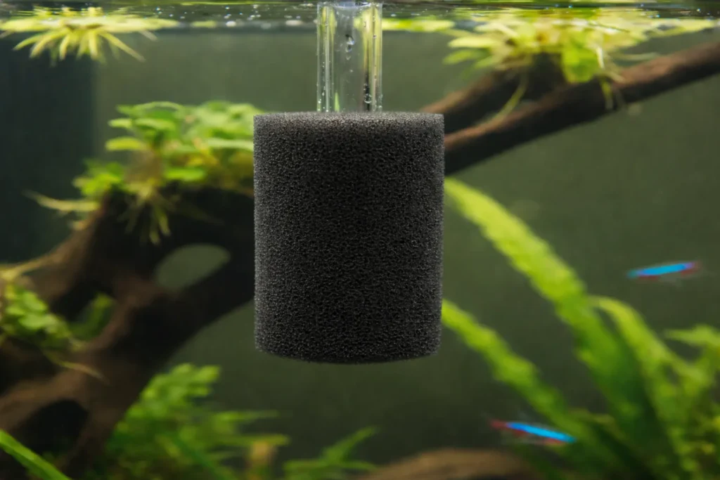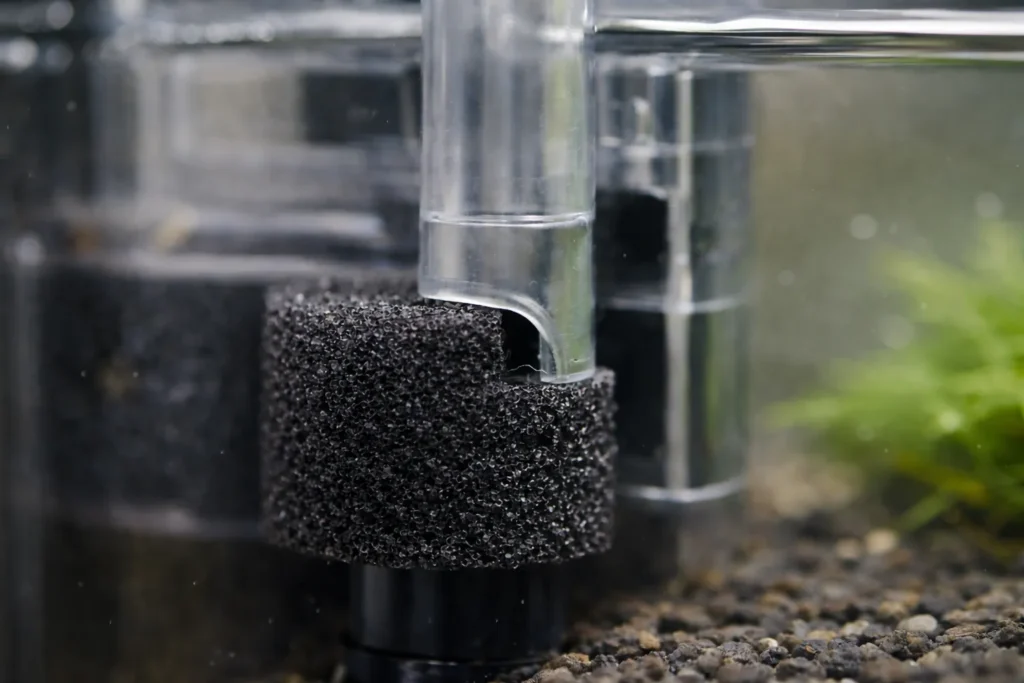 外掛けを使うにしても、繁殖と安定を狙うならスポンジフィルター併用はかなり強いです。稚エビを吸い込みにくい、水流が穏やか、エアレーションで酸素が入りやすい、スポンジ表面にバクテリアが安定しやすい。レッドビー向きの条件が揃っています。