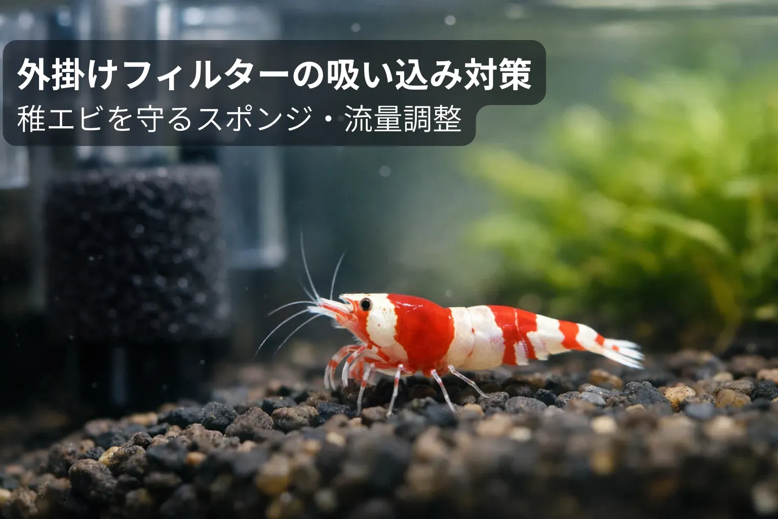 外掛けフィルターは「そのまま」だと稚エビの生存率を落としやすい一方で、
